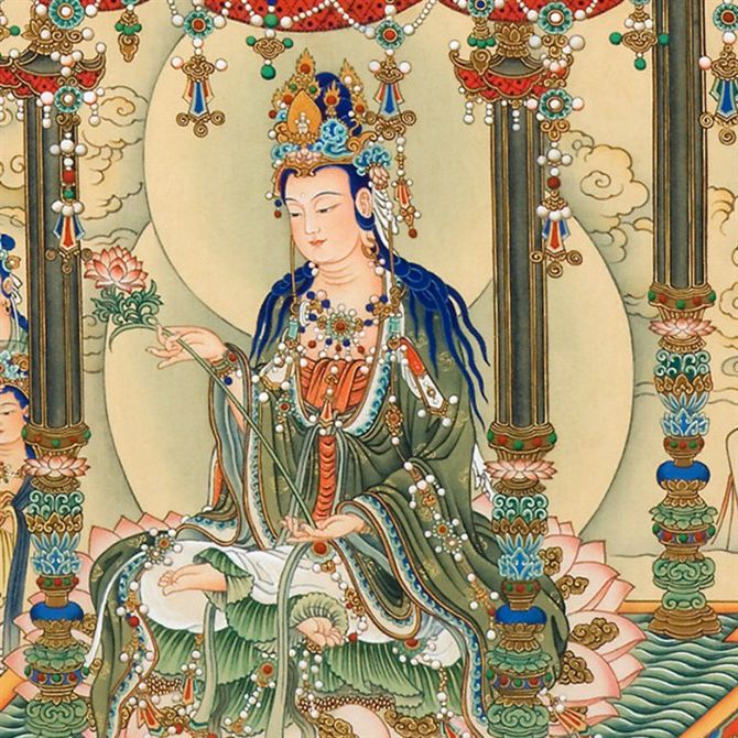 大势至菩萨法相 2020-08-12 12:23:57佛像唐卡245 摘要智慧第一的大势至菩萨摩诃萨是西方极乐世界教主佛阿弥陀佛的右胁侍者,又尊称大精进菩萨,与无教主佛阿弥陀佛,以及阿弥陀佛的左胁侍观世音菩萨合称为“西方三圣”。 西方极乐世界教主阿弥陀佛的右胁侍者 智慧第一的大势至菩萨摩诃萨是西方极乐世界教主阿弥陀佛的右胁侍者,又尊称大精进菩萨,与无教主佛阿弥陀佛,以及阿弥陀佛的左胁侍观世音菩萨合称为“西方三圣”。 大势至菩萨以独特的智慧之光遍照世间众生,使众生能解脱血光刀兵之灾,得无上之力量,威势自在,因此,大势至菩萨被认为是光明智慧第一 ,学佛修行者的依怙。 佛教经典故事之八——悟性如光 佛教经典故事之七一杯茶 佛教经典故事之六–你且看他 佛教经典故事之五 输与赢 点赞 https://www.brxuefo.top/1209.html 复制链接 复制链接