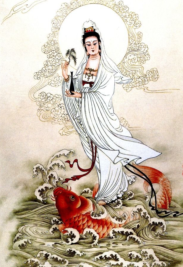 这时,通天河周围的百姓都赶来瞻仰观音的丰采,其中有会画画的,把观音当时的形象画了下来。这画像留传后世,被人们叫作鱼篮观音。