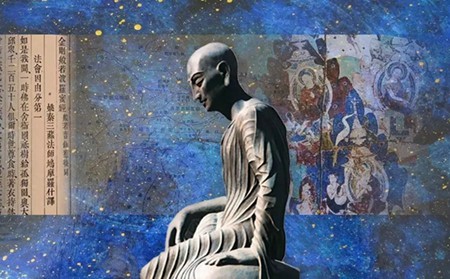 鸠摩罗什(344-413) 意译“童寿”。一译鸠摩罗什婆、鸠摩罗耆婆;略称罗什。十六国时后秦僧人、著名佛经翻译家、中国佛教四大译经家之一。龟兹(今新疆库车一带)人。其祖本天竺(今印度)人。属婆罗门种姓,世袭高官。罗什祖父达多,倜傥不群,名重于国。父鸠摩罗炎,聪明有懿节,弃相位出家,东渡葱岭,远投龟兹,被龟兹王迎为国师。王有妹名耆婆,年 20 岁,聪明颖悟,诸国来聘,均不应。及见鸠摩罗炎,心向倾之。王遂逼其娶之。不久怀罗什。相传,罗什在胎时,其母慧解异常,闻雀梨大寺名德既多,又有得道高僧,就与王族贵女德行诸尼,每日设供,请斋听法。某日罗什母忽自通天竺语,众皆惊异,有罗汉达摩瞿沙说:“此必怀智子。”及生罗什后,便忘前语。