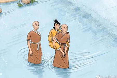 “来吧,姑娘,”坦山说道,然后就把那位姑娘抱过了泥路,放下后又继续赶路。